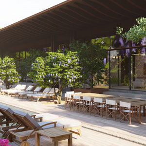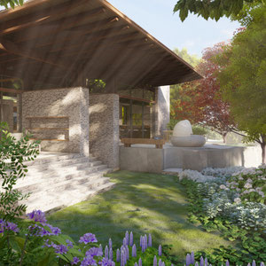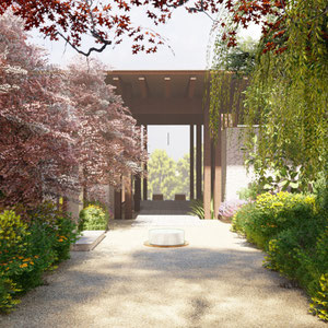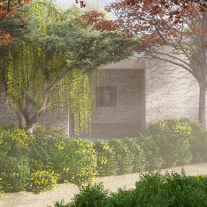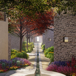 Esta segunda etapa nace en una fuente que alimenta un canal, atraviesa un arco y plaza de acceso. Continúa flanqueado por encinos rojos que estructuran una profunda fuga visual. Entre los arbustos se encuentran senderos ocultos que dan acceso a las suites, baños, biblioteca, desayunador, etc.