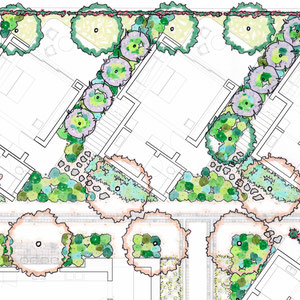 La propuesta de paisaje parte de la forestación existente, procurando dar forma y carácter con gestos repetitivos. Dando continuidad a la primera etapa con temática de parches, buscamos solo cambiar de escala, generando grandes parches de jardinería con diversidad de especies afines. Logrando un juego entre definición y ambigüedad en distintas escalas.